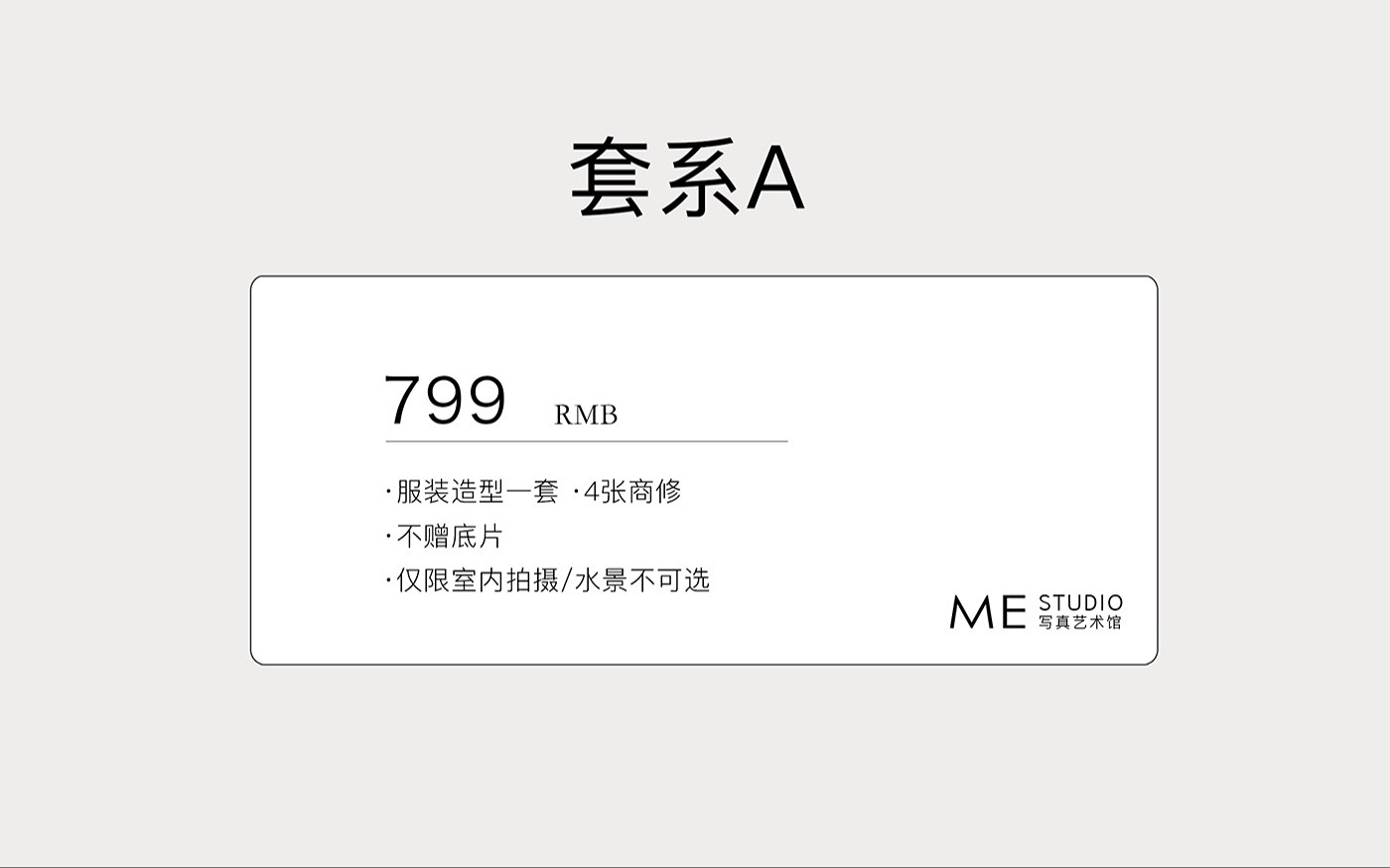 •服装造型一套 •4张商修 •不赠底片 • 仅限室内拍摄/水景不可选